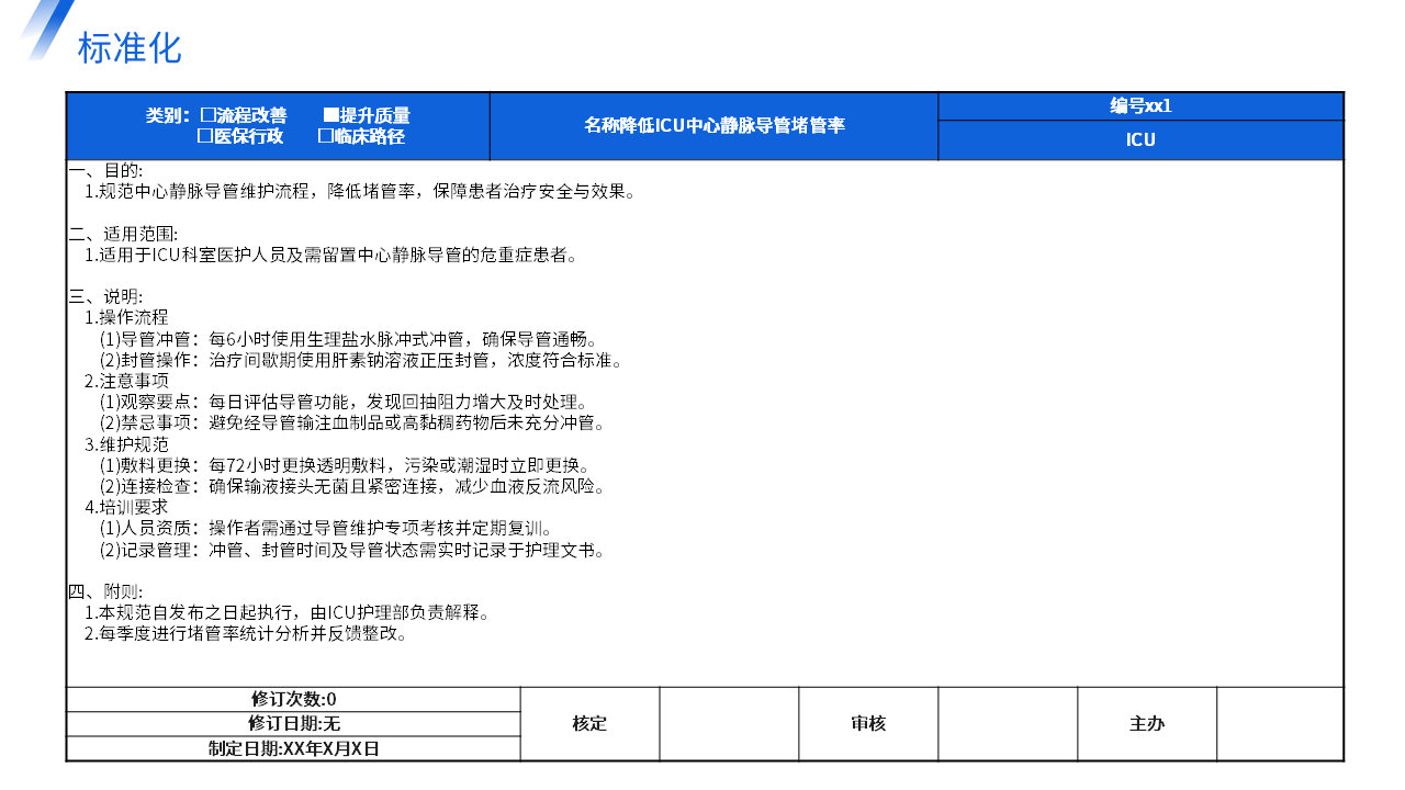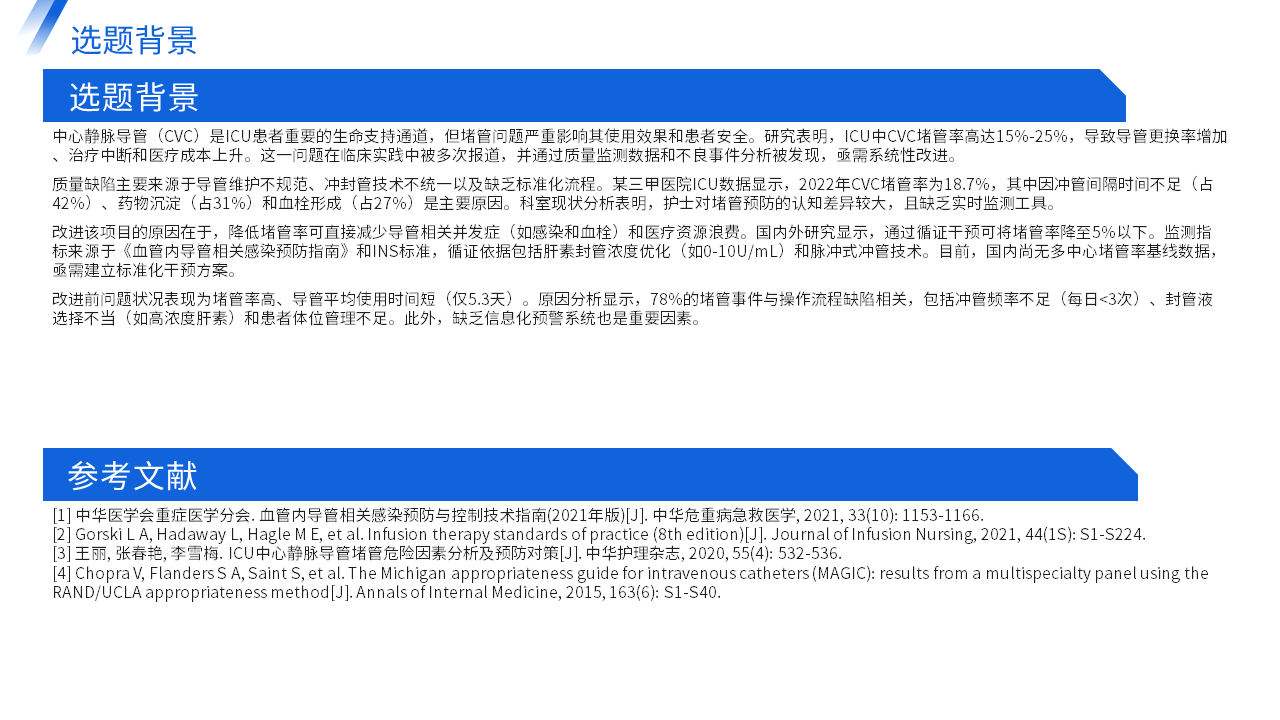 降低ICU中心静脉导管堵管率品管圈模版