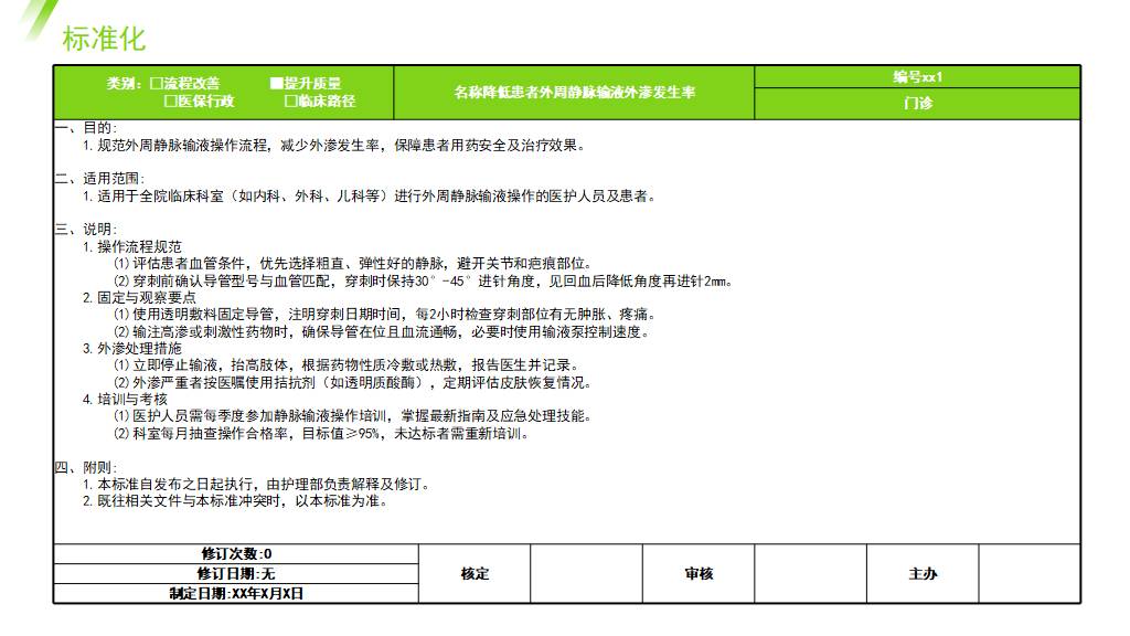 降低患者外周静脉输液外渗发生率品管圈PPT模版